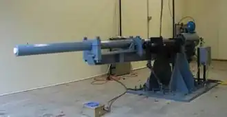 A combustion light-gas gun (CLGG) is a projectile weapon that utilizes the explosive force of low molecular-weight combustible gases, such as hydrogen mixed with oxygen, as propellant. When the gases are ignited, they burn, expand and propel the projectile out of the barrel with higher efficiency relative to solid propellant and have achieved higher muzzle velocities in experiments. Combustion light-gas gun technology is one of the areas being explored in an attempt to achieve higher velocities from artillery to gain greater range. Conventional guns use solid propellants, usually nitrocellulose-based compounds, to develop the chamber pressures needed to accelerate the projectiles. CLGGs' gaseous propellants are able to increase the propellant's specific impulse. Therefore, hydrogen is typically the first choice; however, other propellants like methane can be used.