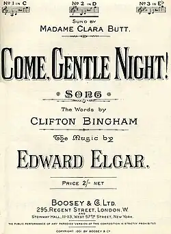 "Come, Gentle Night!" is a poem by Clifton Bingham[1] set to music by the English composer Edward Elgar in 1901.