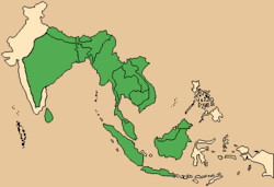 Combined ranges of the northern red muntjac (M. vaginalis) and southern red muntjac (M. muntjak)