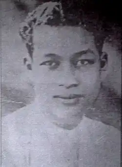 This was against the prevailing opinion of the nationalist We Burmans Association (Dobama Asiayone or the "Thakins"), including Aung San, who had secretly left Burma in 1940 with a group of young intellectuals, later known as the Thirty Comrades, to receive military training from the Japanese.[2] Aung San and the Thirty Comrades returned to Burma in 1941 and established the Burma Independence Army (BIA) to fight against the Allies.[2][3] After capturing Rangoon in 1942, the Japanese established a puppet state, the State of Burma, and later installed Aung San as its Deputy Prime Minister in August 1943. The BIA was reorganised as the puppet state's armed forces, the Burma National Army (BNA).[4]