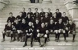 Pomona University rugby union team, champion of California. Concerned by the violence of American football, rugby union was played by Californian universities instead of it during 1906–14