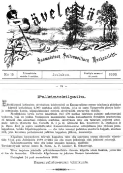 With arrival of fall, Sibelius set out in September 1889 for Berlin,[10] where he would continue his music studies (now as a post-graduate) under the German composer Albert Becker. Nevertheless, Sibelius found time to compose more personal works on the side, one of which was his second piece for torviseitsikko: the Allegro in G minor.[11] This piece Sibelius wrote for a competition held by the Finnish Society for Popular Education (in Finnish: Kansanvalistusseura), which in December 1888 had run an advertisement in the music magazine Säveleitä[12] promoting a contest for new torviseitsikko compositions; the primary requirement was that the entry be a "fantasy" (rather than an arrangement) of a Finnish folk song. Sibelius's Allegro, which he submitted under the pseudonymous initialism 'n–l–s' (for Jea – N • Sibe – L – iu – S)[13] made use of two songs: Hevonen kuin koirasteeri and Tuomi on virran reunalla. However, the Allegro failed to win the prize of 500 Finnish markka,[11] perhaps because the three judges—the organist, composer, and professor Richard Faltin; the conductor Ernst Schnéevoigt; and Leander—concluded it was "far too difficult and therefore impractical for amateur bandsmen".[13]