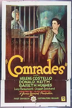 Comrades is a 1928 American silent drama film directed by Cliff Wheeler and starring Donald Keith, Helene Costello, and Gareth Hughes.[1]