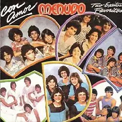 Con Amor - Tus Éxitos Favoritos is a compilation album by the Puerto Rican boy band Menudo,[1] released in 1984.[2] The tracklist brings together many of the hits that contributed to the quintet's popularity at the time, performed by both past and current members.[3] In total, it features twelve songs that previously appeared on six of the group's albums released between 1979 and 1984, namely: Chiquitita (1979), Fuego (1981), Quiero ser (1981), Una Aventura Llamada Menudo (1982), Por amor (1982), and Reaching Out (1984).[4]