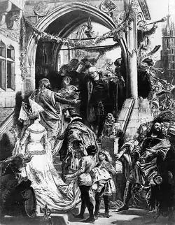The Congress, which took place in lavish surroundings, was intended as a manifestation of the Polish king's power and wealth and echoed throughout Europe. It included a famous banquet at the house of the Kraków merchant Mikołaj Wierzynek, which was organised by the city council. The occasion for the feast, which, according to Jan Długosz, lasted for 21 days, was the recent wedding of Charles IV and Casimir's granddaughter Elizabeth of Pomerania.[1]