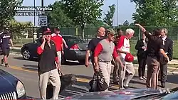 On June 14, 2017, a mass shooting occurred during a practice session for the annual Congressional Baseball Game in Alexandria, Virginia. 66-year-old James T. Hodgkinson shot four people, including then U.S. House Majority Whip Steve Scalise, U.S. Capitol Police officer Crystal Griner, congressional aide Zack Barth, and lobbyist Matt Mika. A ten-minute shootout took place between Hodgkinson and officers from the Capitol and Alexandria Police before officers shot Hodgkinson, who died from his wounds later that day at the George Washington University Hospital.[8][9] Scalise and Mika were taken to nearby hospitals where they underwent surgery.[10]