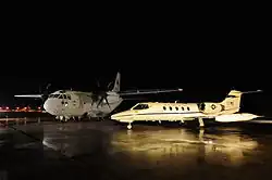 A C-21A of the Connecticut Air National Guard sits beside a C-27 during an Alenia familiarisation visit to Bradley ANGB