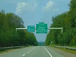 Exit numbers are currently sequential, but are scheduled to be converted to mile-based numbering starting in 2022. Mileage will be based on the originally-planned southern terminus at I-95 that includes the approximately 9-mile unbuilt section from Route 82 to I-95. The entire route is in New London County.