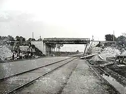 The eastern part of the new line partially coincided with the existing Connecting Line while the railroad authorities were seeking to eliminate its unsuitable curve during 1875. The Rocket Range was relocated and a straightened route was drawn through it for Putilovskaya Line, with the intention to construct a bridge under Tsarskoselskaya line to avoid a level crossing. This allowed optimization of the Connecting Line with elimination of the problematic Kresty station. The Putilovskaya Line was built from 1878 to 1880 and was inaugurated in 1881. A new stretch of the Connecting Line was laid along in parallel, running under the bridge, but the two lines were still separate structures. The curve remained until 1886 when it was dismantled together with the Kresty station.