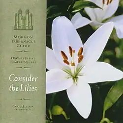 Consider the Lilies is a religious album released by the Mormon Tabernacle Choir. The album was originally released in 2003.[1] It was remastered in 2023 along with a release on vinyl.[2] The music in this first album on the choir's new label represents a broad range of musical feeling—from the joyful "Rejoice, the Lord is King!" and "Morning Has Broken" to the contemplative "O Holy Jesus" and "Pilgrims' Hymn" to the fervent affirmations in "I Believe in Christ" and "This Is the Christ."