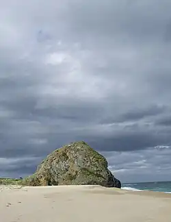 Cook's Head Rock is a phonolite basalt rock[1] standing on the Chrystall's Beach expanse closely north of the rivermouth settlement Toko Mouth of South Otago, New Zealand.[2] The lower faces of the rock are made up of numerous hexagonal basalt columns suggesting Cook's Head Rock is a former volcanic vent.