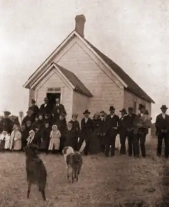 Cordelia Lutheran Church was dedicated by Pastor Peter Carlson on December 15, 1883, and is the oldest Lutheran building in the state of Idaho. The church was built on property given by Andrew Olson in the Lenville, Idaho area to serve the Swedish Lutheran families in the area.[2] In 1919, the building ceased to be used for regular church services.[3] The building and surrounding 31 acres (13 ha) is currently owned and administered by a non-profit group named Friends of Cordelia.[4] The building is used for weddings, picnics, socials, concerts and Easter Sunrise service by area residents.