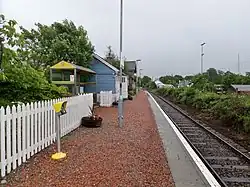 The single platform has a shelter, a bench and some bike racks. There is step-free access to a small car park.[7] As there are no facilities to purchase tickets, passengers must buy one in advance, or from the guard on the train.