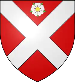 The coat of arms borne by the heads of the family was blazoned gules, a saltire, in chief a rose argent. The same arms were borne by the Corries of Newbie. According to Alexander Nisbet, the Corries of Kelwood bore the same arms but differenced with a chief sable (as illustrated in Pont's manuscript);[13] according to R. R. Stodart, they differenced their arms with a chief argent.[14]