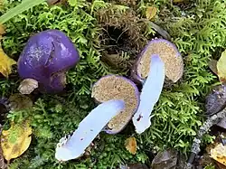 - ^ a b c d e f g Nilsen, Andy R.; Wang, Xin Yue; Soop, Karl; Cooper, Jerry A.; Ridley, Geoff S.; Wallace, Michael; Summerfield, Tina C.; Brown, Chris M.; Orlovich, David A. (2020-05-03). "Purple haze: Cryptic purple sequestrate Cortinarius in New Zealand". Mycologia. 112 (3): 588โ605. doi:10.1080/00275514.2020.1730120. ISSN 0027-5514. PMID 32315246.