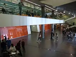 The university's Közraktár Street building was completed in 2007. It offers 50,000 square metres (540,000 sq ft) of floor space, which includes an office building and education areas. The building has community areas, and hosts the 450-seat central library of the university which contains 100,000 books and journals.[16][18]