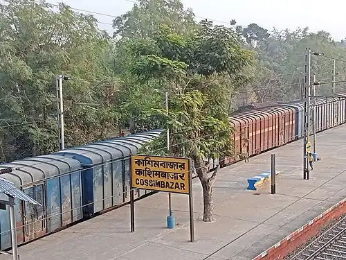 Cossimbazar is a railway station of the Sealdah-Lalgola line in the Eastern Railway zone of Indian Railways. The station is situated at Cossimbazar in northern part of Baharampur in Murshidabad district in the Indian state of West Bengal. It serves northern part of Baharampur.[1] Distance between Sealdah and Cossimbazar is 189 km (118 mi).[2]