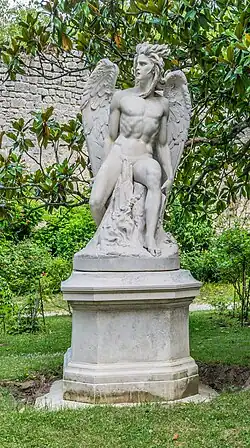 Lucifer was reviewed by Francesco dall' Ongaro at rhapsodic length as a worthy representation of the Satanic ideal shared in the literary works of John Milton or Lord Byron. Dall' Ongaro found the figure "androgynous," in keeping with the theological view that gender came into existence only with the creation of human beings and was not a characteristic of angels.[4] The sculpture received notice for its "extraordinary vigor."[5]