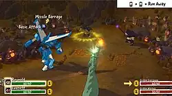 At times, the player characters will encounter monsters, leading to the battle mode for the game. Here the children become giant versions of what costumes they are wearing, along with abilities reflected by that costume; for example, a child wearing a makeshift robot costume becomes a giant mechanized robot, while a child wearing a medieval sweater becomes a knight in armor and sword. Battles are turn-based, allowing the player to select attacks, blocks, or a special move that requires hitting a quick time event at the right moment to achieve maximum damage to their foes. Winning battles leads to additional rewards towards the player's main quest.[6]
