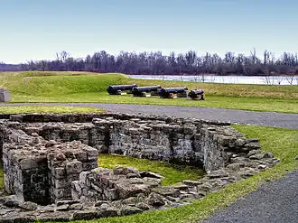 ![]() Remains of military fortifications with the waterway in the distance | |