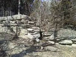 Cottonwood Limestone, or simply the Cottonwood,[5] is a stratigraphic unit and a historic stone resource in east-central Kansas, northeast-central Oklahoma, and southeastern Nebraska in the Midwestern United States.[2] It is the lowest member of the Beattie Limestone formation and commonly outcrops within the deep valleys and on top of the scenic residual ridges of the Flint Hills.