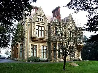 The property was purchased by a South American merchant, Albert Miles Speer, who demolished it in 1873. He commissioned a new and larger house, construction of which started in 1874.[6] It was designed by Henry Haddon in the Perpendicular Gothic style, built by Collins and Cullins of Tewkesbury in coursed stone and was completed in 1880.[7] The carving was undertaken by William Forsyth, while stained glass was designed by Heaton, Butler and Bayne.[1]