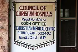 Council of Christian Hospitals (COCH) is a not-for-profit healthcare provider in India. COCH is a body corporate under Indian Societies Registration Act and has its registered office in premises of one of its participating hospitals, that is, Christian Medical Centre, Pithapuram in East Godavari District of Andhra Pradesh.