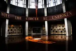 The Hall of Fame Rotunda features a mural, The Sources of Country Music, by Thomas Hart Benton. It was Benton's final work; as he died in his studio while completing it.[6]