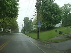 NY 115 begins at West Baker Street (eastbound US 44 and NY 55) in eastern Poughkeepsie. As Worrall Avenue, it heads north through the easternmost portion of the city. An intersection with West Maple Street (westbound US 44 and NY 55) soon follows after and then gains the moniker of Innis Avenue. NY 115 continues on, passing King Street Park to the east before crossing into the town of Poughkeepsie at Arnold Road.[3] Here, maintenance of the roadway shifts from the city of Poughkeepsie to Dutchess County, which maintains the road as CR 75. This designation continues north along NY 115 to the Salt Point Turnpike, where CR 75 ends and maintenance of NY 115 switches once more to the New York State Department of Transportation (NYSDOT).[4] NY 115 joins the Salt Point Turnpike northward, paralleling the St. Peter's Cemetery and passing near the Dutchess Community College as it enters Hyde Park.[3]