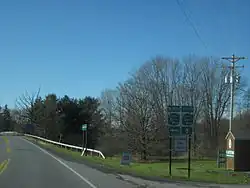 Across the town line, NY 115 intersects with both CR 39, a connector route leading north toward the hamlet of Hyde Park, and CR 16, a parallel route to NY 9G between Hyde Park and Clinton, as it turns northeast and crosses into Pleasant Valley. NY 115 then meets CR 71 and CR 73 in quick succession as it parallels CR 72 toward the hamlet of Salt Point. The two routes converge just outside the hamlet, with NY 115 continuing toward the hamlet. Once in Salt Point, NY 115 crosses over Wappinger Creek just south of an intersection with CR 18 near the northern edge of the community. NY 115 progresses onward, paralleling Wappinger Creek into the town of Clinton, where NY 115 intersects CR 14 as Wappinger Creek turns away from the Salt Point Turnpike. The Turnpike, as well as NY 115, continue northeast to the Taconic State Parkway, where NY 115 terminates at the northbound exit ramps to the parkway. Past the Taconic, the Salt Point Turnpike continues for another 4 miles (6 km) to NY 82 in Stanford as CR 17.[3]
