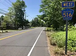 Another 0.3-mile-long (0.48 km) spur consists of Green Grove Avenue between Maple Place and 1st Street (CR 6).[3] Though heading west from Route 35 shows CR 516 making a left onto Maple Place, one CR 516 reassurance shield (without a "Spur" plaque) appears at Green Grove Avenue's intersection with 1st Street.[6][7]