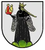 The first heraldic testimony of the Kirchberg family is a seal from around 1200 that shows three covered towers. It is preserved in a reduced form in the coat of arms of the city of Bruneck. Only from the middle of the 13th century are further pictorial sources available, which always show a crowned female figure carrying either a helmet or a lily in her hands. The heraldic statement of this figure is not clear. From the late 13th century, a lily or helmet was replaced by a miter, which is probably due to the Bishop of Brixen, Bruno of Kirchberg. In the late Middle Ages, the female figure was often depicted as a Moor. In this form it was also added to the Fugger's coat of arms, who bought the county in 1507. Likewise, today's coats of arms of Illerkirchberg and Oberkirchberg go back to the late medieval coats of arms of the Kirchbergs.