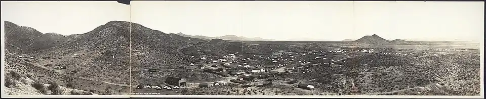 Between 1908 and 1909, four large mining companies, the Great Western, the Calumet & Arizona, the Copper Queen and the Leadville, began mining copper ore in the Dragoon Mountains. Hundreds of settlers arrived and established a tent city almost overnight. In a short time, the Mexico & Colorado Railroad (owned by the El Paso & Southwestern, and the Arizona & Colorado Railroad, owned by Southern Pacific), built lines to the town to accommodate settlers.[3][4]