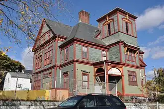 The Covell Street School (or Joslin Multi-Service Center) is an historic school building at 231 Amherst Street in Providence, Rhode Island. It is a two-story wood-frame structure built in a typically elaborate Queen Anne style. Although it is basically rectangular in plan, its roofline and exterior are busy, with a complicated group of cross gables, hip-roof sections, with projecting and recessed sections. A three-story square tower rises from the center of the main facade. Built in 1885 and opened in 1886, it is one of Providence's last surviving 19th-century neighborhood school buildings.[2] It was designed by the local firm of William R. Walker & Son, designers of many Rhode Island civic buildings. The builders were John L. Sprague & Company.[3]