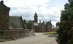 The hospital, which was designed by James Matthews, opened as the Inverness District Asylum in May 1864.[2][3] Additional male and female hospital wards were completed in 1898, a large new recreation hall was added in 1927 and a new chapel, designed by William Mitchell, was completed in 1963.[2] After the introduction of Care in the Community in the early 1980s, the hospital went into a period of decline and closed in 2000.[2] Although the main building was badly damaged in an arson attack in 2007, remedial work was carried out, including replacement of one of the towers in spring 2019, to allow the building to be converted for residential use as "Great Glen Hall".[4] A modern facility, known as New Craigs Psychiatric Hospital, was built to the north of the old hospital.[5]