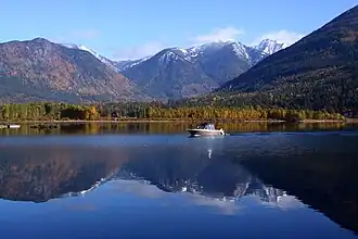 Crawford Bay is a community of approximately 350 people,[3] situated in the Purcell mountain range on the eastern shore of Kootenay Lake in the West Kootenay region of southeastern British Columbia.[4] This location on Highyway 3A is 76 kilometres (47 mi) by road north of Creston and 48 kilometres (29.8 mi) by road and ferry northeast across Kootenay Lake from Nelson.