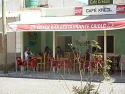Trilingual signs on Cafe Kreol in Cape Verde.