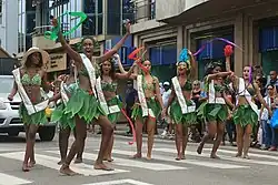 In the Caribbean, the term broadly refers to all the people, whatever their class or ancestry — African, East Asian, European, Indian — who are part of the culture of the Caribbean.[14] In Trinidad, the term Creole is used to designate all Trinidadians except those of Asian origin. In Suriname, the term refers only to the descendants of enslaved Africans and in neighboring French Guiana the term refers to anyone, regardless of skin colour, who has adopted a European lifestyle.[15][14]