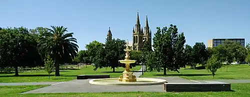 The Creswell Gardens are located in the Adelaide Park Lands between the Adelaide Oval, War Memorial Drive, King William Road and St Peter's Cathedral. They were established in 1909 and named after South Australian sportsman John Creswell. The gardens contain a number of Adelaide's landmark features.[1]