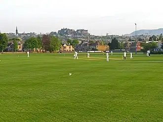 Cricket at Goldenacre in Edinburgh, with Edinburgh Castle as a backdrop