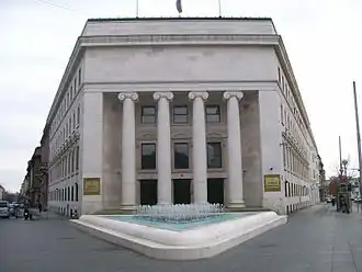 The seat of the CNB in central Zagreb, designed by architect Viktor Kovačić, was erected for the Zagreb Stock and Commodity Exchange and inaugurated in 1927. It has been used by the National Bank of Yugoslavia, then by the National Bank of Croatia since the end of World War II.[3]