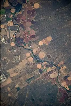 In Limpopo province, about 35 km further, the river passes the town of Thabazimbi and meanders for many kilometres through a sparsely inhabited area before joining the Marico River just west of Rooibokkraal at the limit of North West province to form the start of the Limpopo River.[4]