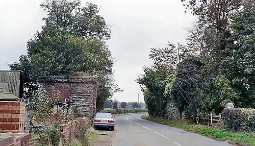 ![]() The remains of the railway bridge near the site of the station in 1991 | |||||