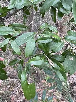 Cryptocarya bidwillii, commonly known as yellow laurel,[2] is a species of flowering plant in the laurel family and is endemic to eastern Australia. Its leaves are lance-shaped to elliptic, the flowers creamy-white and tube-shaped, and the fruit an elliptic black drupe.