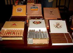 Cuban cigars are cigars manufactured in Cuba from tobacco grown within that island nation.[1] Historically regarded as among the world's "finest", they are synonymous with the island's culture and contribute over one quarter of the value of all exports from the country. The filler, binder, and wrapper may come from different areas of the island, though much is produced in Pinar del Río province, in the regions of Vuelta Abajo and Semi Vuelta, as well as in farms in the Viñales region.[2] All cigar production in Cuba is controlled by state-owned Cubatabaco. The Cuban cigar is also referred to as El Habano.[3]