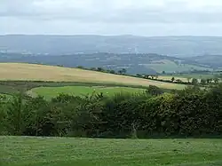 The coast of Ceredigion is made up of a long coastal plain that contains high cliffs, coves, large bays and estuaries. The coastal plain gets narrower towards the more mountainous north of the county [1] and is cut by the wide estuaries of the Teifi and the Dyfi.[2] The broad and fertile Teifi valley is ideal for dairy farming and mixed farming.[3][4] Heavy rainfall washes the minerals out of the soil and results in the mountainous areas of the county having relatively poorer, acidic soils. The plough line can be as low as 700 feet, which restricts cultivation.[5][6]