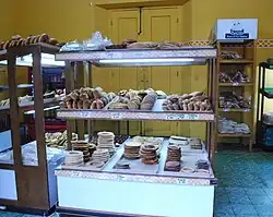 The cultural center of the state is San Cristobal de las Casas. Specialties in this city are based mostly on cured meats such as ham and sausages, which are of Spanish origin attributed to Bartolomé de las Casas, as well as indigenous dishes such as various tamales (including one flavored with saffron) .[3][4] A common street food in San Cristobal is called a cazueleja, which is a roll stuffed with cheese, egg and cinnamon. San Cristobal is also known for its sweets as it is common to consume these with coffee in the late evenings.[9] Sweets include crystallized fruit, coconut candies, a caramel spread called cajeta and various sweet and normal breads, which were introduced to the area by the French.[1][3][4]