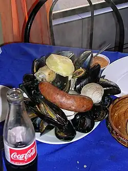 The cuisine of Chiloé is a distinct form of cuisine from Chiloé Archipelago. The current cuisine of Chiloé emerged from the fusion of Chiloé's indigenous Chono cuisine with those of Huilliche and Spanish invaders. One of the main characteristics of the cuisine of Chiloé is the use of earth ovens and extensive use of shellfish and of the different potato varieties of Chiloé.
