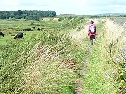 Gower is well known for the quality of its lamb. On the sandstone areas, such as Cefn Bryn, Davies comments: "The sheep feeding thereon are noted for fineness of wool and well-flavoured mutton."[2] Of particular note is the quality of the lamb grazing on the salt marshes of the Burry Inlet. The animals spend their life grazing on a diet of salt marsh grasses, samphire, sea lavender, sorrel and thrift, which gives the meat a fine flavour.[5] Gower salt marsh lamb was awarded registered as a Protected Designation of Origin under UK law in 2021.[6] and (despite opposition of France) under EU law in 2023.[7]