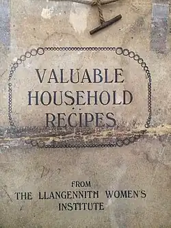 On Gŵyl Mabsant, or Saint's Day, various Gower villages celebrated their patron saint. Each village had a traditional Mabsant dish. At Llangenydd/Llangennith it was whitepot, a mixture of flour, milk and currants blended together and baked in a brick oven. Whitepot was said to commemorate the milk that flowed from the church bell at St Cenydd's Church, which is known as the Titty Bell. Rhossili's speciality was a kind of plum pudding called a Bonny clobby, and Llanmadog's speciality was a mutton pie made from chopped mutton and currants.[30] The Methodist minister William Griffiths said in 1819 of the Mabsant festivities: 'It was an ungodly gathering and a meeting of the devil for drinking and dancing.'[30]